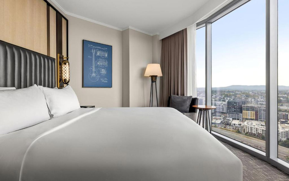 For travelers who appreciate modern luxury and a lively atmosphere, the JW Marriott Nashville offers spacious rooms, floor-to-ceiling windows, and stunning city views. The hotel also features an impressive rooftop lounge, multiple dining options, and a full-service spa. Its proximity to Music City Center makes it particularly convenient for business travelers attending conferences or events.