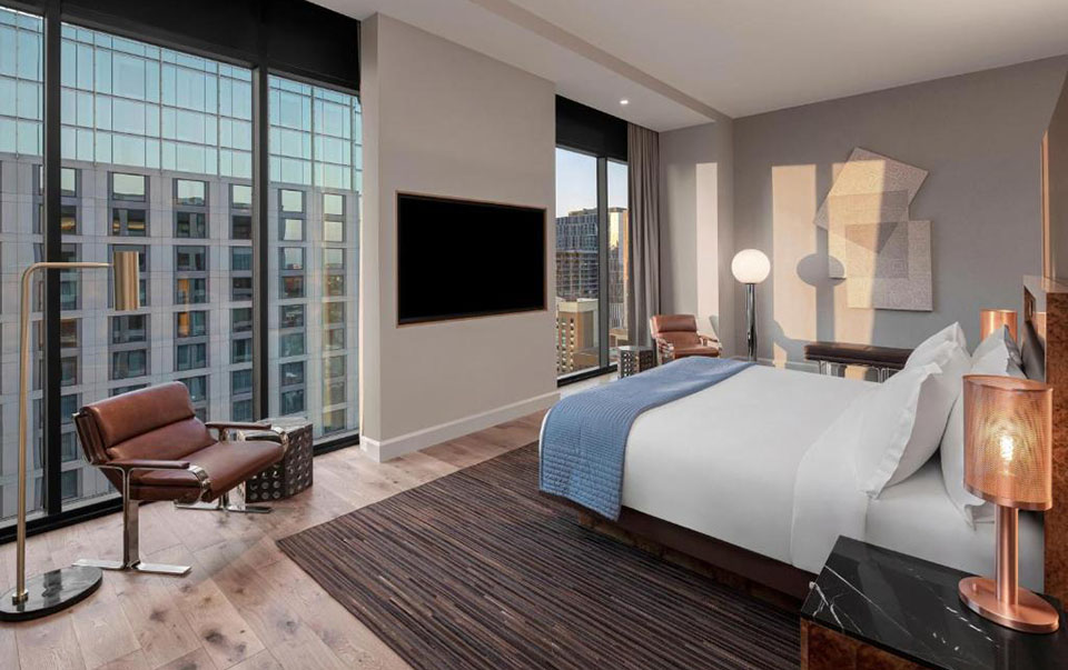 Noelle is a boutique hotel with a playful and sophisticated design, featuring chic rooms, a rooftop bar, and a vibrant lobby lounge. Its central location allows easy access to Nashville’s nightlife, music venues, and cultural attractions. The hotel often hosts live music performances, enhancing the city’s immersive experience.